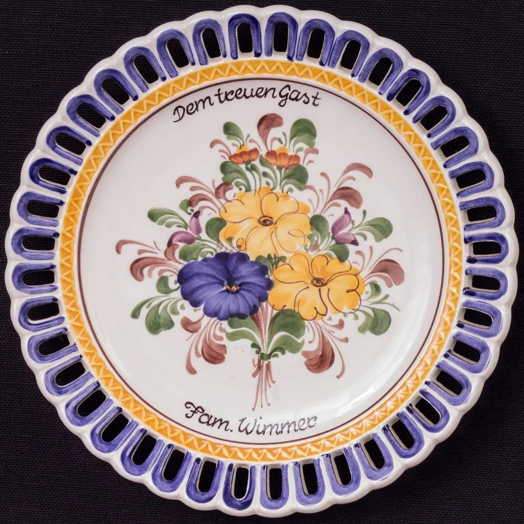 Винтажное керамическое блюдо с ажурным краем WECHSLER-TIROLKERAMIK SCHWAZ / Австрия.